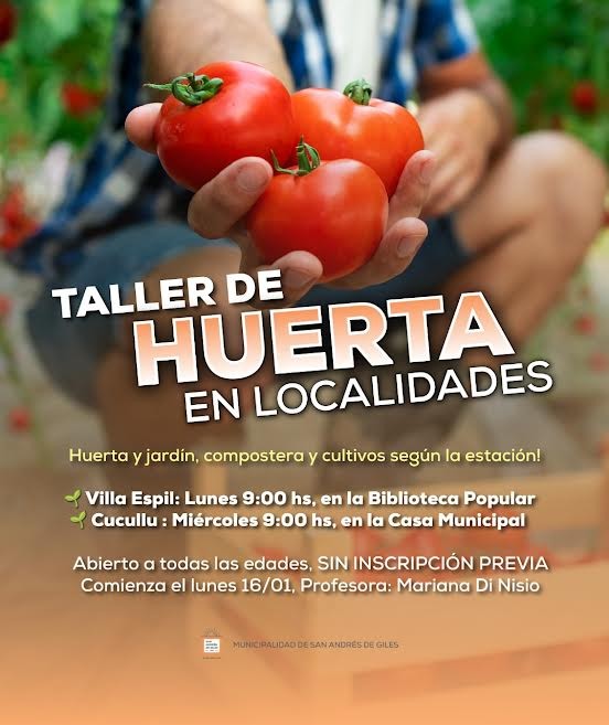 (San Andrés de Giles, 16.Ene.2023 / A1 Noticias) Este taller propone enseñar a los concurrentes a realizar una huerta en casa, conocer cuáles son los cultivos de cada estación y tener el conocimiento para hacer una compostera.