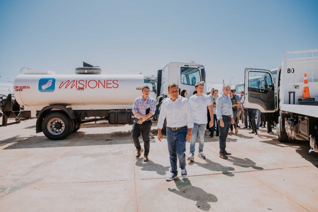 Misiones: Herrera Ahuad encabezó la entrega de una nueva flota de camiones a municipios