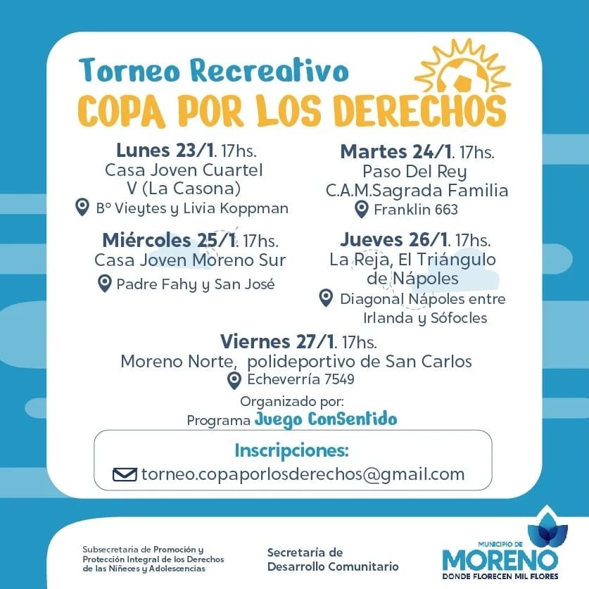 Moreno: Comienza el torneo recreativo “Copa por los Derechos”