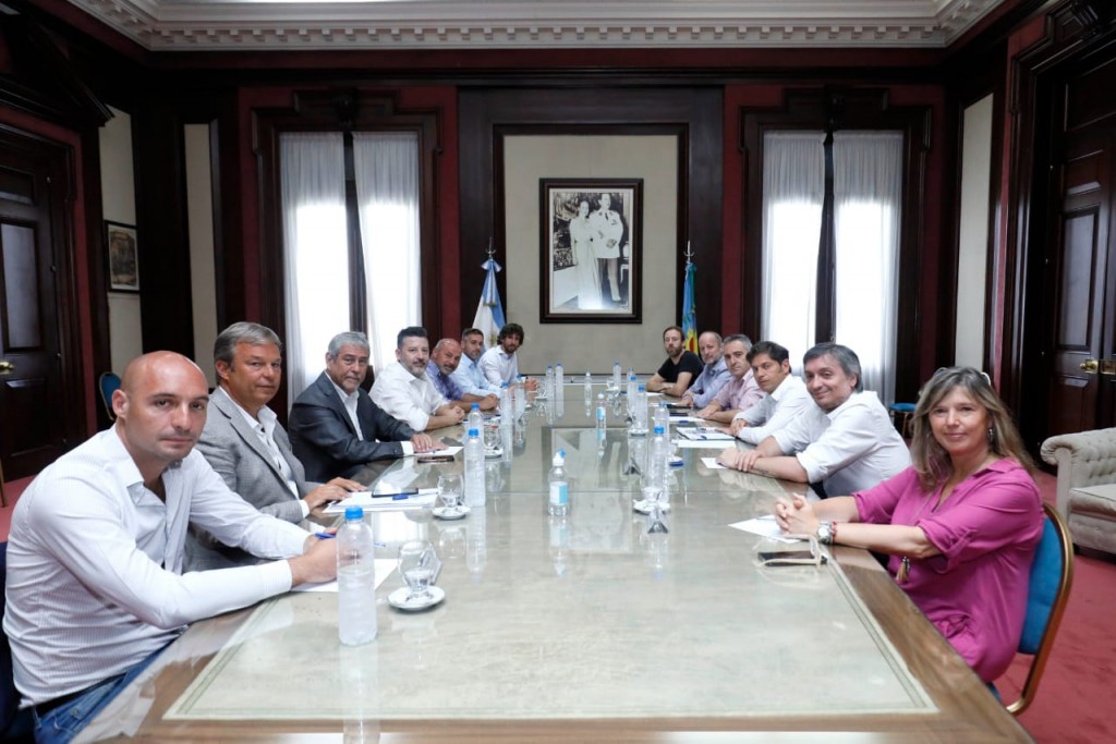 (Avellaneda, 31.Ene.2023 / A1 Noticias) El gobernador de la provincia de Buenos Aires, Axel Kicillof, junto al diputado nacional Máximo Kirchner; el jefe de Gabinete bonaerense, Martín Insaurralde; la ministra Cristina Álvarez Rodríguez; y los ministros Pablo López y Andrés Larroque, recibieron a los intendentes de Avellaneda, Jorge Ferraresi; de San Fernando, Juan Andreotti; de Ensenada, Mario Secco; de Pilar, Federico Achaval; y de Escobar, Carlos Ramil; al diputado bonaerense Mariano Cascallares; y al presidente del Grupo Provincia, Gustavo Menéndez.