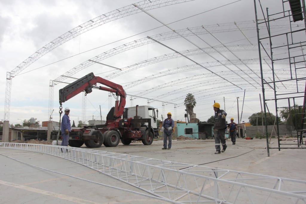 (Esteban Echeverría, 06.Feb.2023 / A1 Noticias)  Los trabajos incluyen el armado de un techo parabólico tradicional con cubierta de chapas cincalum sobre perfilería galvanizada y vigas reticuladas que tienen apoyo en bases y columnas de hormigón armado.