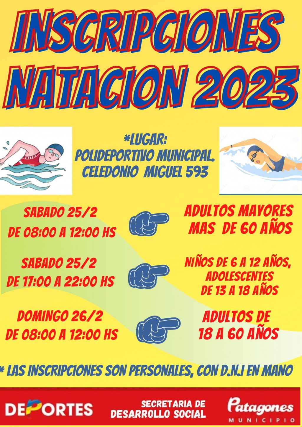 La Dirección de Deportes informa que, a partir del próximo 25 de febrero, inician las inscripciones para las clases de natación, que se dictan durante el año en el Natatorio ubicado en el Club Atenas