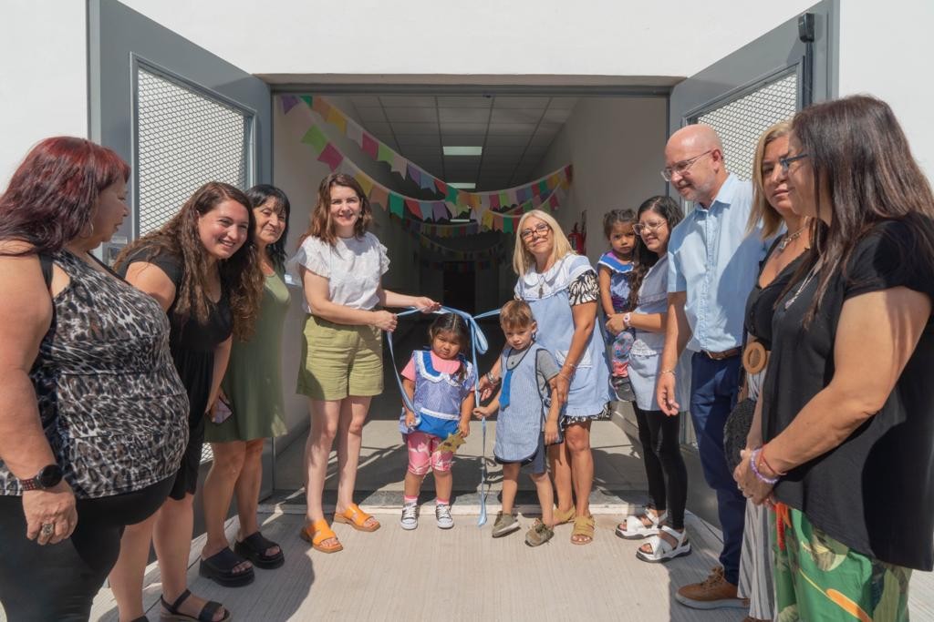 (Moreno, 03.Mar.2023 / A1 Noticias) Con la inversión del fondo de financiamiento educativo, en el Jardín se construyeron cuatro aulas y tres baños, lo que permite un crecimiento de la matrícula de 240 chicas y chicos en dos turnos. También se instalaron equipos de aire acondicionado, se equipó con mobiliario escolar, se pintaron los juegos y se está construyendo un nuevo ingreso a la institución.