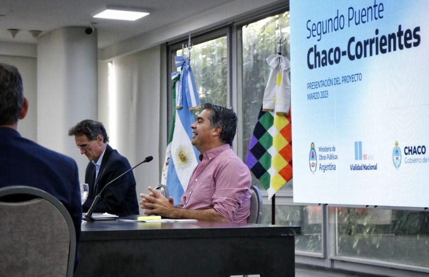 (Chaco, 07.Mar.2023 / A1 Noticias) El gobernador Jorge Capitanich y el ministro de Obras Públicas de la Nación, Gabriel Katopodis, junto con equipos y representantes del Ministerio de EconomÃa nacional y provincial, Vialidad Nacional y del Gobierno de Corrientes, presentaron el proyecto final del Segundo Puente Chaco-Corrientes ante el Banco Interamericano de Desarrollo (BID), con el objetivo de promover su financiación y definir los mecanismos necesarios para el inicio de la megaobra.