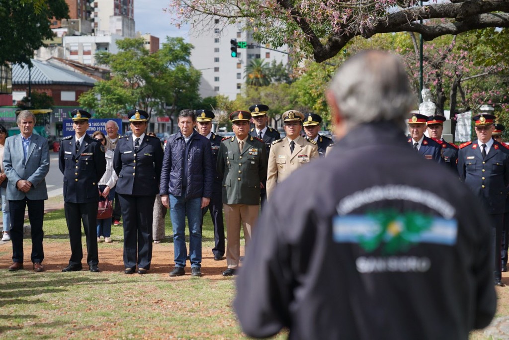 Esta mañana, el homenaje siguió en la plaza Remedios de Escalada, ubicada en la intersección de las avenidas Santa Fe y de la Unidad Nacional, en Acassuso. El acto comenzó con la entonación del Himno Nacional y un minuto de silencio en memoria de los héroes sanisidrenses inmolados en la batalla de Malvinas.