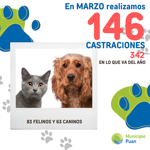 (Puan, 12.Abr.2023 / A1 Noticias) Durante el mes de marzo, se realizaron 146 castraciones en la localidad de Darregueira y Villa Iris, de las cuales 83 corresponden a felinos y 63 a caninos.