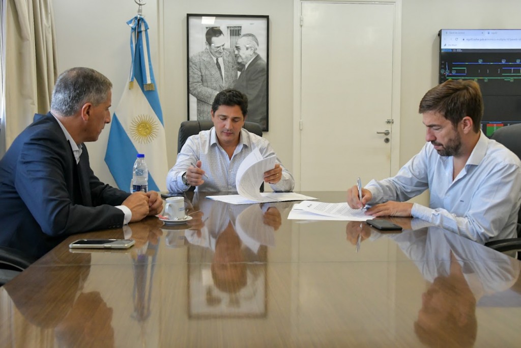 El intendente Dr. Juan I. Ustarroz firmó convenio con Trenes Argentinos para continuar realizando obras e intervenciones en la Estación Sarmiento y en la calidad de la prestación del servicio que arriba a nuestro Partido. El encuentro fue en la sede central y la rúbrica con su presidente, Martín Marinucci