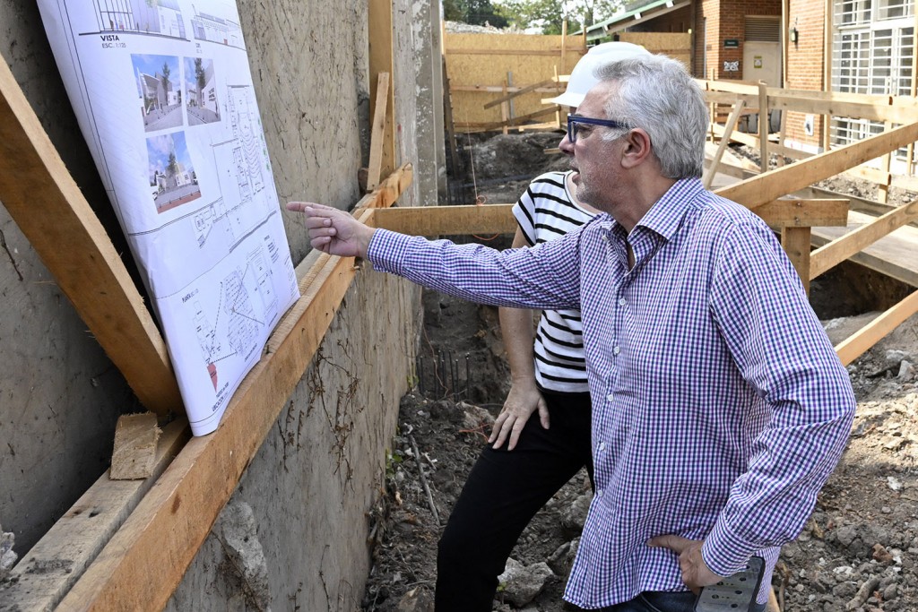 En el transcurso de la recorrida, el jefe comunal supervisó los planos de la construcción. Hasta el momento, se están desarrollando labores de movimientos de suelo, excavación y tareas en la superficie del espacio.