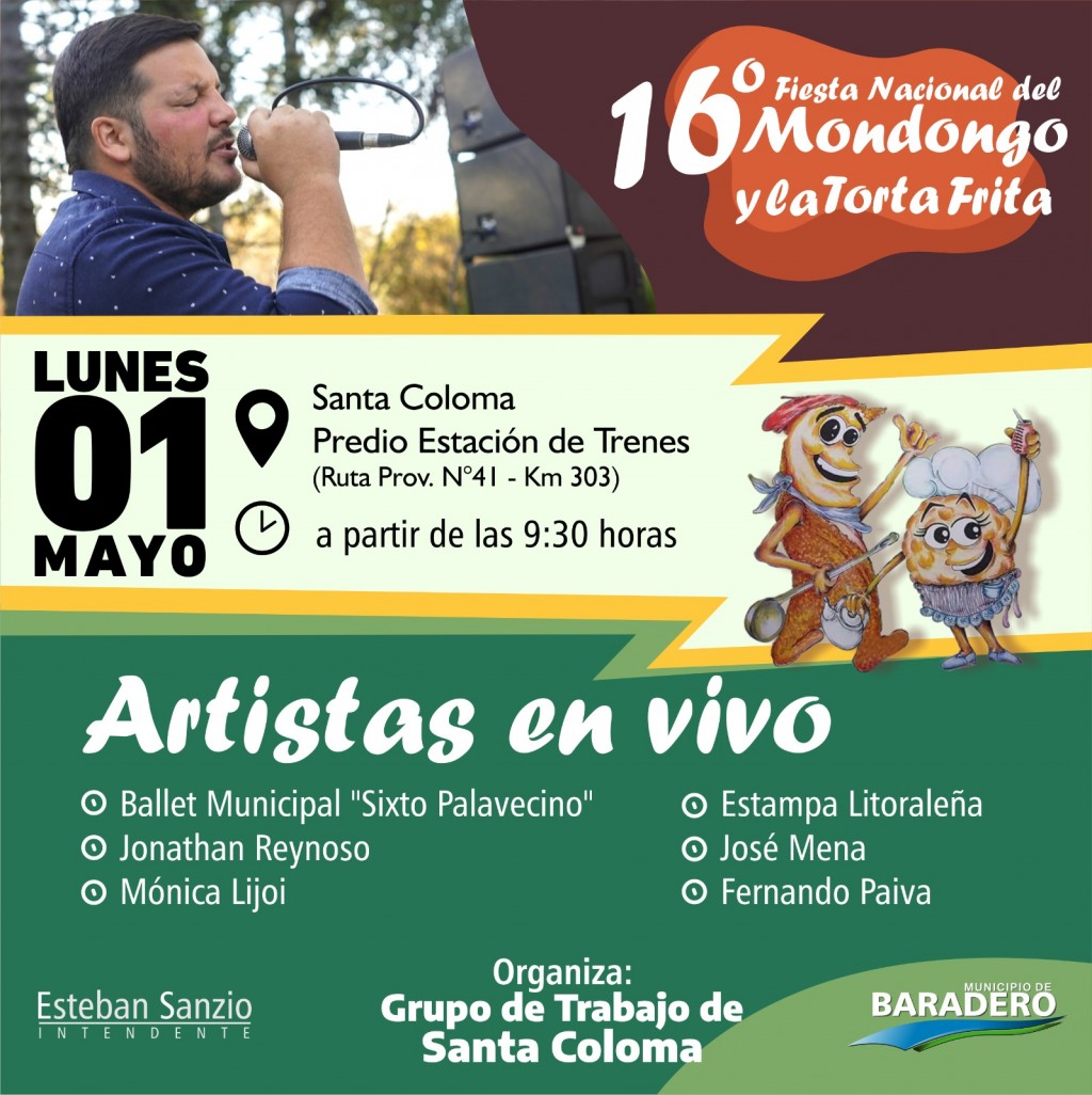 El 1° de mayo se realizará en Santa Coloma una nueva edición de uno de los eventos populares más importantes del distrito. Se trata de la 16° Fiesta Nacional del Mondongo y la Torta Frita que se llevará adelante desde las 9:30 horas en el Predio de la Estación de Trenes (Ruta Prov. N°41 – Km. 303)