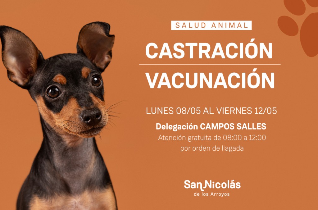 Desde el lunes 8 y hasta el viernes 12 de mayo de 8:00 a 12:00, el tráiler de castración y vacunación de la Municipalidad de San Nicolás estará ubicado en la Delegación de Campos Salles. De esta manera todos los vecinos de la zona pueden acceder a ambos servicios de manera gratuita