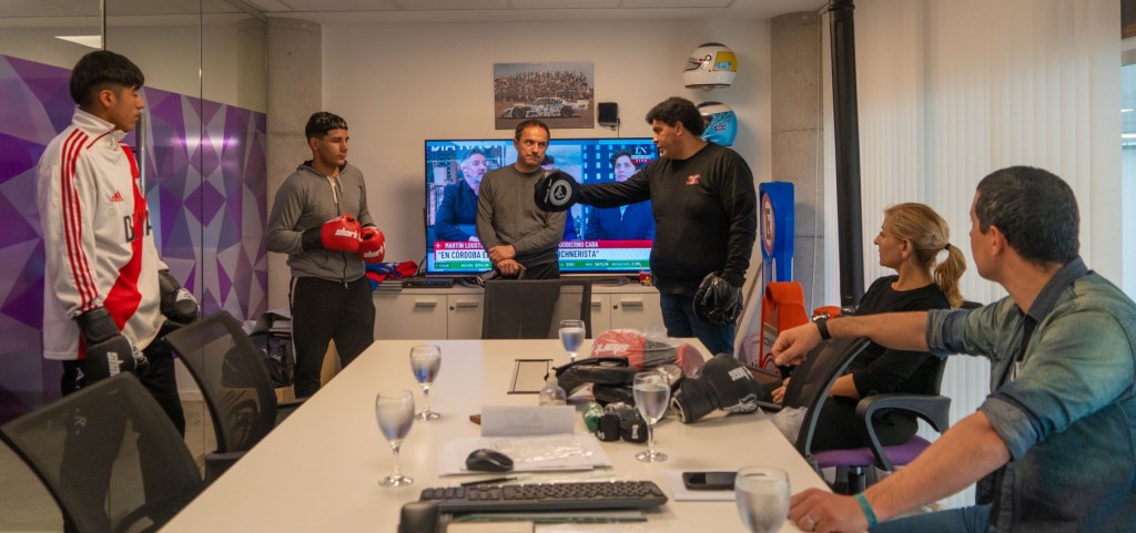 Los púgiles no solo le brindaron detalles de sus entrenamientos y sus planes a futuro, sino que también le ofrecieron una demostración de golpes, aprovechando los guantes, las manoplas y vendas que les entregó Abella de parte del Municipio.