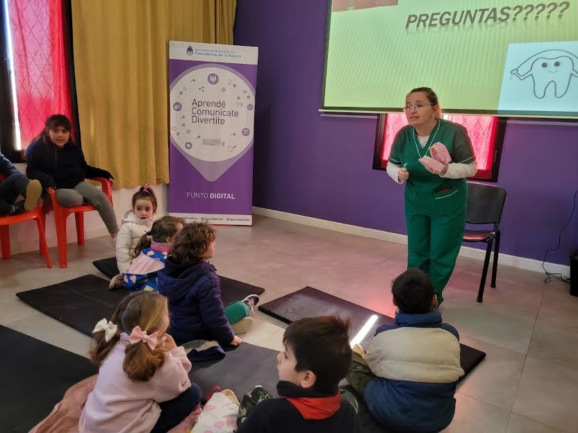 (General Villegas, 20.Jul.2023 / A1 Noticias) La actividad estuvo destinada a niños y niñas a partir de 5 años y se realizó de manera articulada junto a CEAM y Biblioteca Villegas. Además, contó con la charla de salud a cargo de la odontóloga María Eugenia Peralta (MP 80553).
