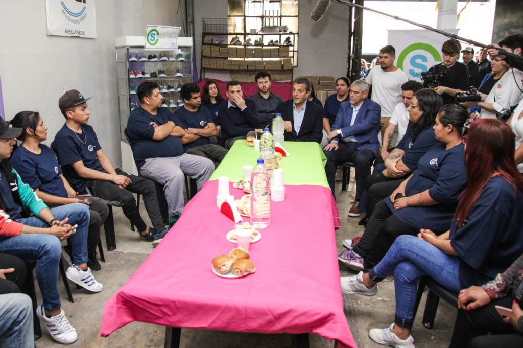 Avellaneda: Ferraresi y Massa visitaron una fábrica de zapatillas en Gerli