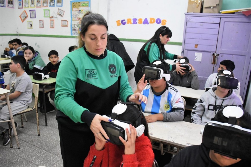 La Subsecretaría de Educación recorre las escuelas locales con sus actividades pedagógicas. En esta oportunidad, el área municipal visitó la Escuela Primaria N° 13, de Barrio Pompeya, con el programa de realidad virtual “Merlo 360°”, con el objetivo de que los alumnos y alumnas aprendan la utilización de nuevas tecnologías