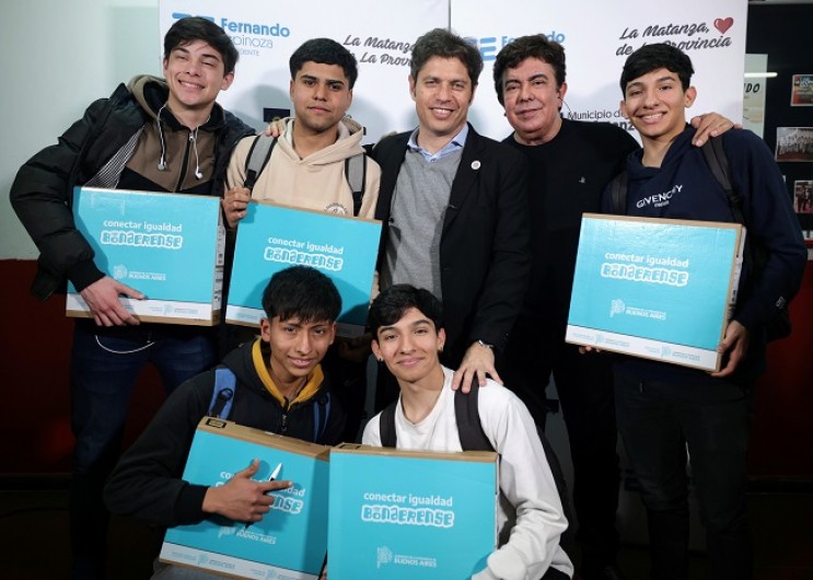 En el marco del programa Conectar Igualdad Bonaerense, el gobernador de la provincia de Buenos Aires, Axel Kicillof, encabezó el acto de entrega de 614 computadoras a estudiantes de ocho escuelas secundarias de La Matanza. Fue en el Club Deportivo Huracán de San Justo, junto al intendente local, Fernando Espinoza; y el director general de Cultura y Educación, Alberto Sileoni
