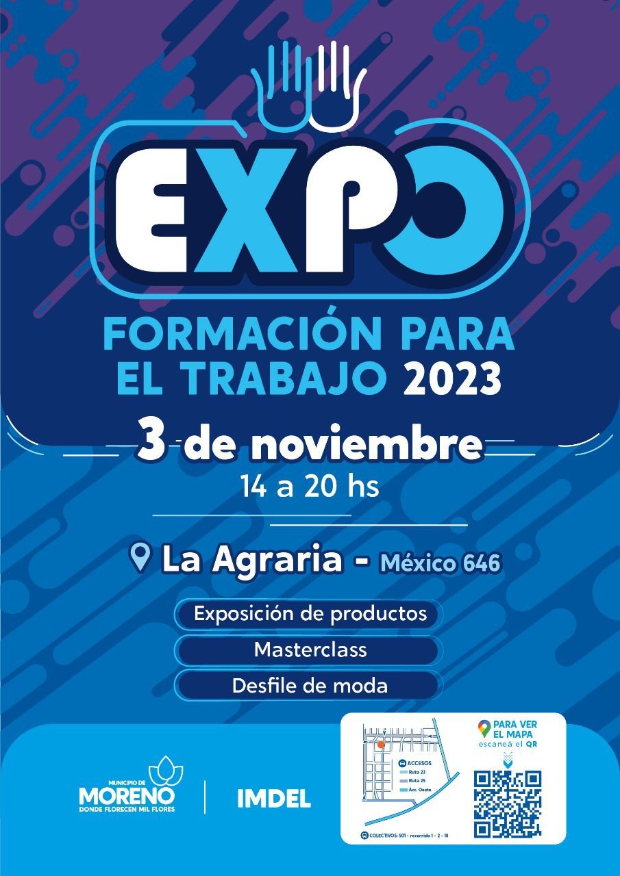 El Municipio, a través del Instituto Municipal de Desarrollo Económico Local (IMDEL), llevará adelante la Expo Formación de Empleo 2023, el viernes 3 de noviembre, de 14 a 20 horas, en La Escuela Agraria, ubicada en la calle México 646, entre El Salvador y Guatemala