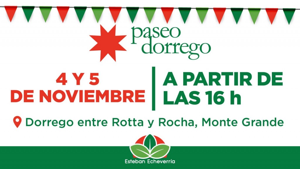 Este sábado 4 y domingo 5 de noviembre, desde las 16 horas, se realizará una nueva edición de Paseo Dorrego, la tradicional feria gastronómica y cultural a cielo abierto que reúne a emprendedoras y emprendedores de Esteban Echeverría