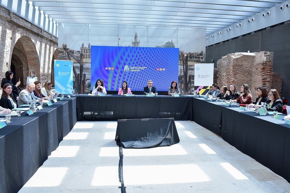 (Entre Ríos, 10.Nov.2023 / A1 Noticias) El jefe de Gabinete de Ministros de la Nación, Agustín Rossi, y las ministras de las Mujeres, Géneros y Diversidad, Ayelén Mazzina, y de Trabajo, Empleo y Seguridad Social, Kelly Olmos, encabezaron en el Museo del Bicentenario el acto que dio inicio a la jornada de trabajo de la Mesa Interministerial de Políticas de Cuidado, donde también participó la subsecretaria de la Mujer de la provincia, Tatiana Richardet, autoridades nacionales, provinciales y de los gobiernos locales así como consejeras de género y diversidad de todo el país.