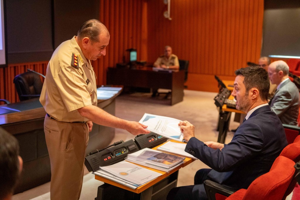 (CABA, 20.Dic.2023 / A1 Noticias) Durante la recorrida el ministro Petri tuvo un encuentro con el jefe del Ejército, teniente general Guillermo Olegario Pereda, que se llevó a cabo en la oficina del teniente general.