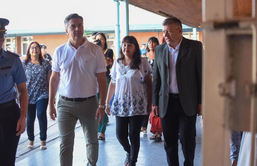 El gobernador, Leandro Zdero, junto a los ministros de Seguridad, Hugo Matkovich, y de Educación, Sofía Naidenoff, visitó este martes por la mañana la Escuela de Educación Primaria N° 804 “Lidia M. Ester Camara de Espinosa”, primera institución donde se colocaron alarmas sonoras en el marco de la reactivación del “Programa Vigía” que tiene el fin de brindar seguridad y prevenir robos