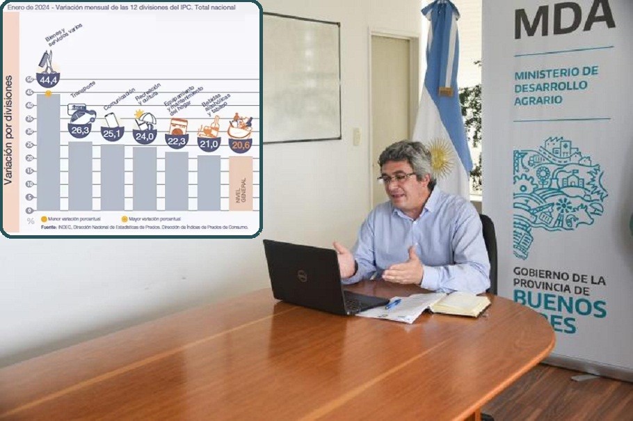 (La Plata, 19.Feb.2024 / A1 Noticias) El ministro bonaerense, Javier Rodríguez afirmó que “la inflación de Milei es el resultado directo de la devaluación que impulsó”. El funcionario de Kicillof analizó que ese porcentaje es producto “de los aumentos en combustibles y de las tarifas. No es la 'inflación reprimida' (sic) del gobierno anterior; es una decisión de licuar los salarios, las jubilaciones y los ahorros de los argentinos”, sentenció Rodríguez.