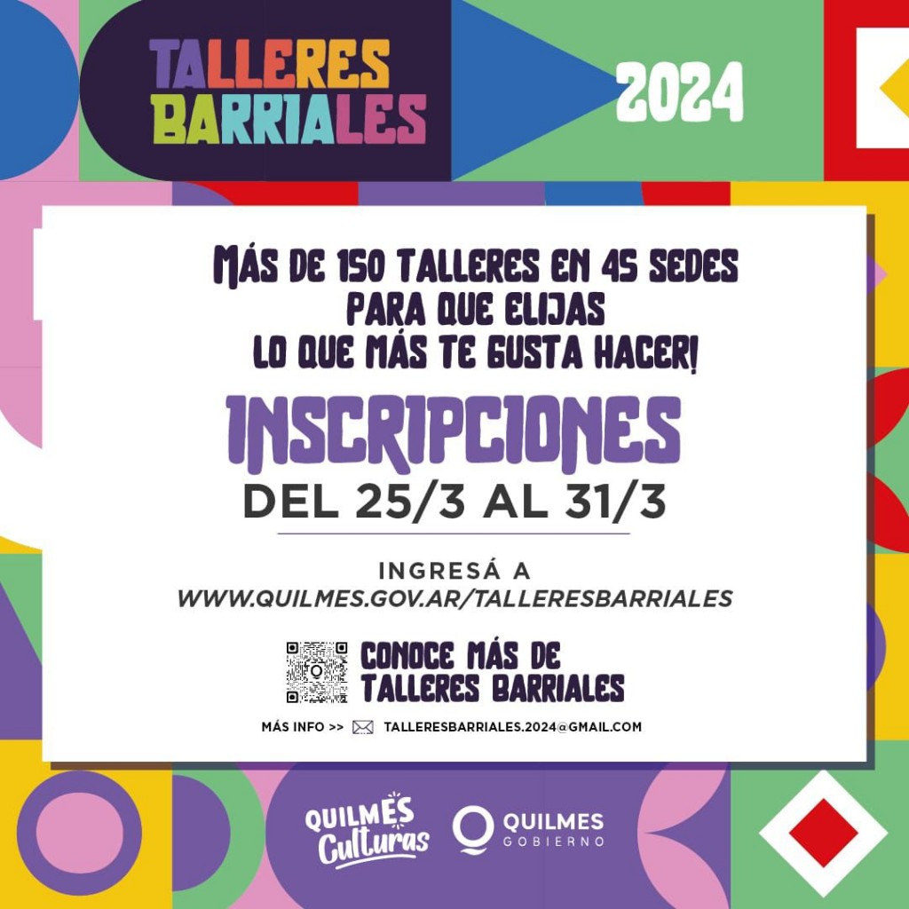 (Quilmes,22.Mar.2024 / A1 Noticias) La misma se extenderá hasta el domingo 31 de marzo y se podrá llevar a cabo a través de la página web de la Municipalidad: www.quilmes.gov.ar/talleresbarriales.