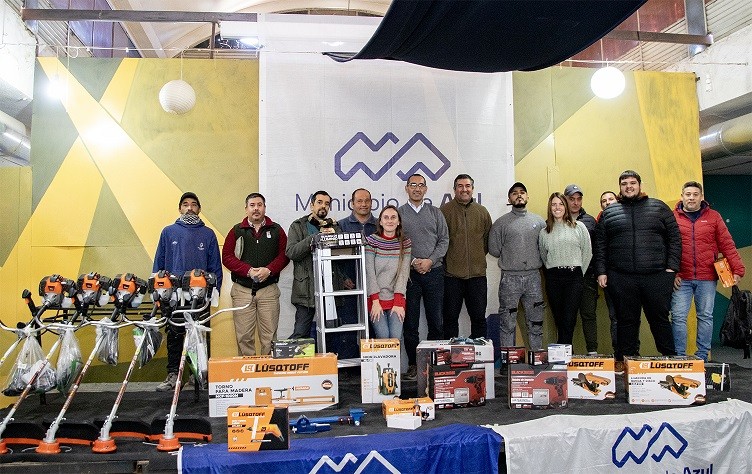En el SUMAC, el intendente municipal Nelson Sombra -acompañado por el secretario de Desarrollo Productivo Local, Arraigo y Empleo Nicolás Tumminaro y la directora de Economía Social y Cooperativismo Silvia Casares- entregó distintos elementos de trabajo correspondiente al programa del Banco de Herramientas