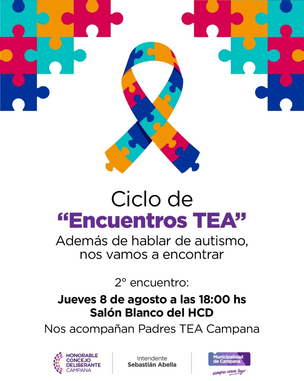 La segunda propuesta de este programa impulsado por el Municipio, se realizará en el Salón Blanco del Concejo Deliberante con el objetivo de transmitir el trabajo que realiza la Asociación Padres TEA para que los vecinos conozcan el funcionamiento del grupo