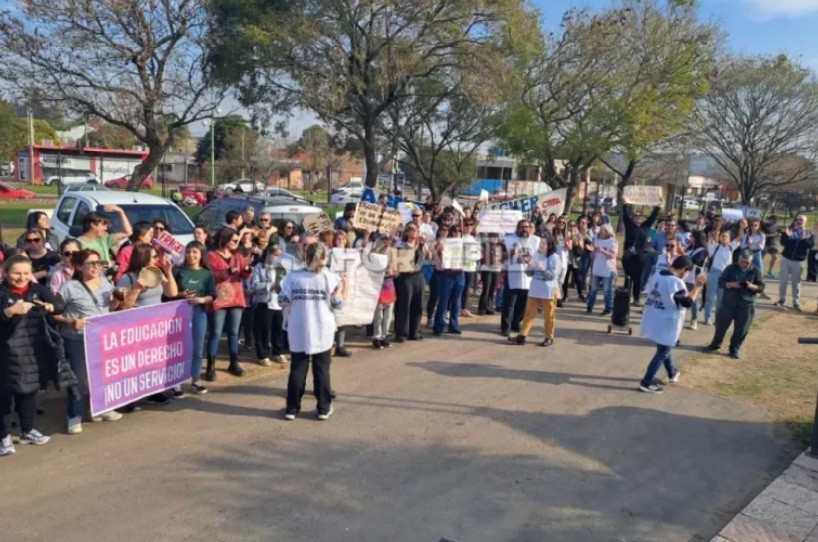 Gualeguaychú (ER): Fuerte repudio de docentes en la visita del gobernador Frigerio