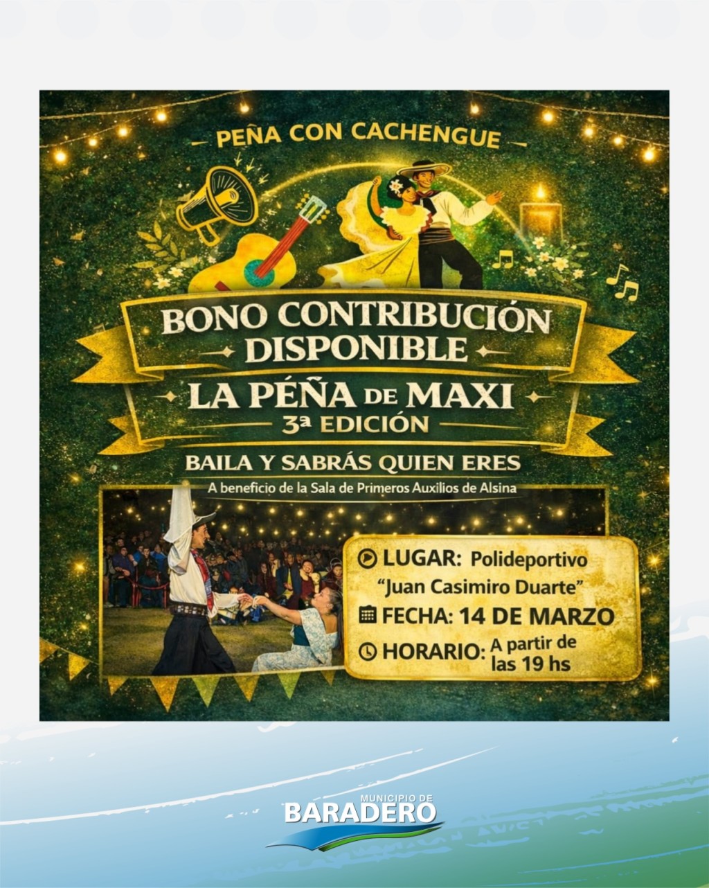 (Baradero, 11.Mar.2026 / A1 Noticias)��El evento, a beneficio de la Sala de Primeros Auxilios de Alsina, propone una noche de folklore, danza y música, pensada como un espacio de encuentro para la comunidad y la región, bajo el lema “Bailá y sabrás quién eres”. La peña se ha consolidado en los últimos años como una celebración cultural que reúne artistas, bailarines y público en torno a la música popular argentina.