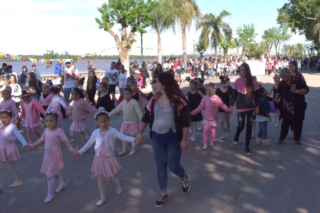 Participaron jardines de infantes, escuelas de danzas, clubes y distintas instituciones de la Ciudad en una espléndida jornada que contó con el acompañamiento de las familias a lo largo del recorrido que se extendió desde Noailles hasta la rotonda Stella Maris en la zona portuaria.