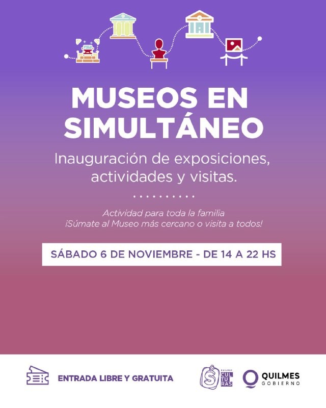 El Municipio de Quilmes informa que el sábado 6 de noviembre entre las 14 y las 22, se realizará la primera edición de “Museos en Simultáneo”, una propuesta para que vecinos y vecinas disfruten las diversas actividades culturales en los Museos del distrito