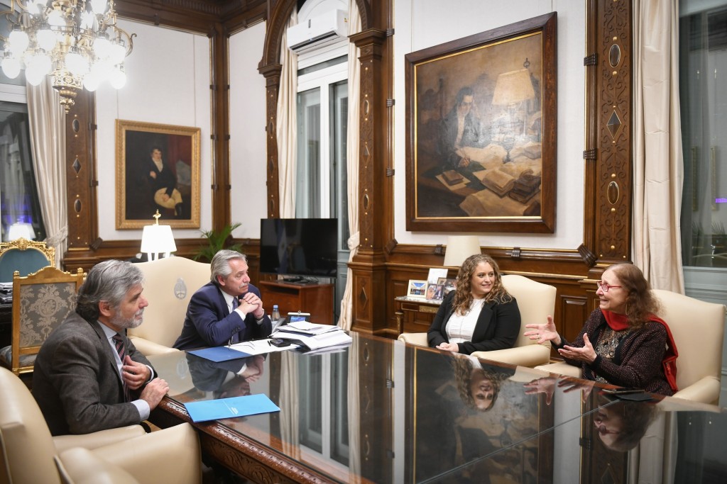 Alberto Fernández recibió en la Casa Rosada, a la biotecnóloga María Florencia Cayrol y a la doctora en ciencias matemáticas Alicia Dickenstein, ambas investigadoras del Consejo Nacional de Investigaciones Científicas y Técnicas (CONICET) y galardonadas con el Premio de L´Oréal-UNESCO “Por las Mujeres en la Ciencia”