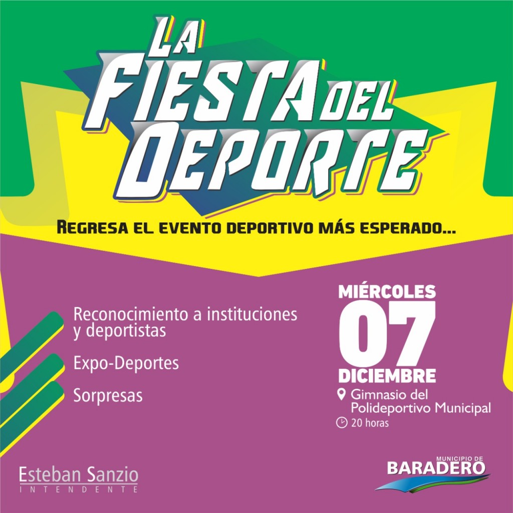 (Baradero, 01.Dic.2022 / A1 Noticias) El regreso de la Fiesta del Deporte busca reconocer a las y los deportistas por su desarrollo deportivo y promocionar las disciplinas de instituciones y organizaciones deportivas de Baradero a través de la Expo-Deportes. BaAdemás de la Expo-Deportes habrá sorpresa para las y los deportistas.