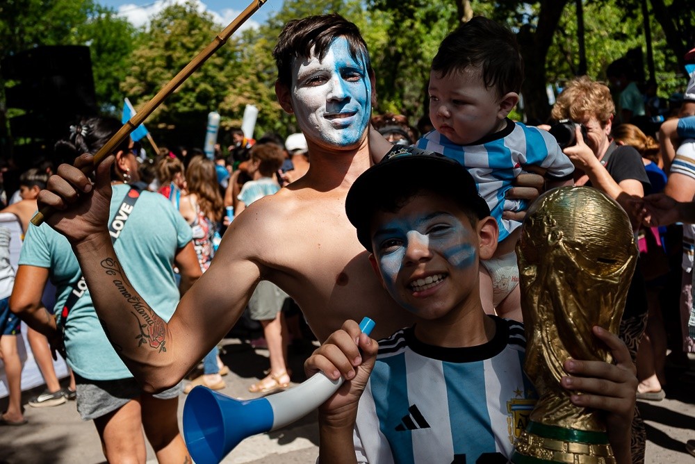 Luego se armó la gran fiesta. Miles llegaron desde todos los puntos de la ciudad y la celebración fue histórica. Hubo regalos gestionados por la Municipalidad ante YPF, siendo remeras, pelotas, cintas de capitales, libros, bolsos, mochilas, entre otros objetos. Se sumó el humo blanco y celeste, las banderitas, globos y globos de cancha regalados a los asistentes dando un marco espectacular, sonando el himno nacional y canciones futboleras durante toda la jornada.
