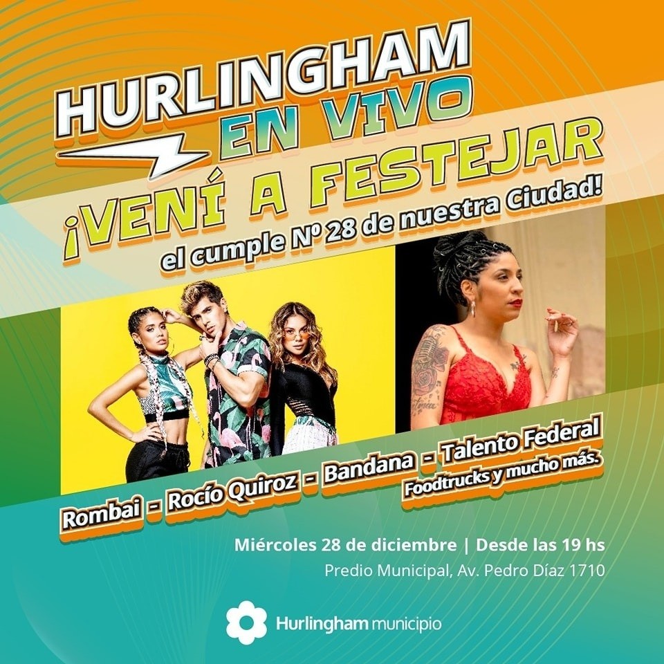 Este miércoles, 28 de diciembre, el Municipio de Hurlingham ofrecerá un repertorio de espectáculos en vivo, música y foodtrucks en el Predio Municipal, para celebrar su 28° aniversario. Además, el intendente Juan Zabaleta participará conmemorando a más de 160 veteranos de Malvinas que son vecinos del distrito