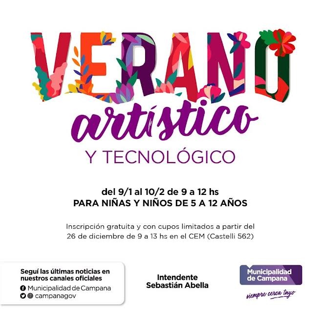 (Campana, 29.Dic.2022 / A1 Noticias) En el verano, las actividades continúan en la ciudad y por ello el Municipio lanza “Verano Artístico y Tecnológico” una propuesta gratuita para niños y niñas de 5 a 12 años.