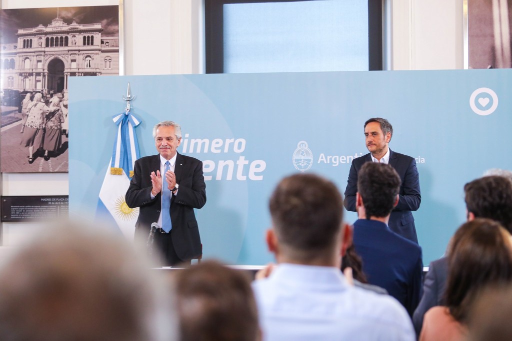 El presidente junto al ministro de Ambiente y Desarrollo Sostenible, Juan Cabandié, el lanzamiento del Programa Edificios Públicos Sostenibles que prioriza la gestión sostenible de los recursos utilizados por los organismos del Sector Público Nacional y las prácticas de consumo y de habitabilidad