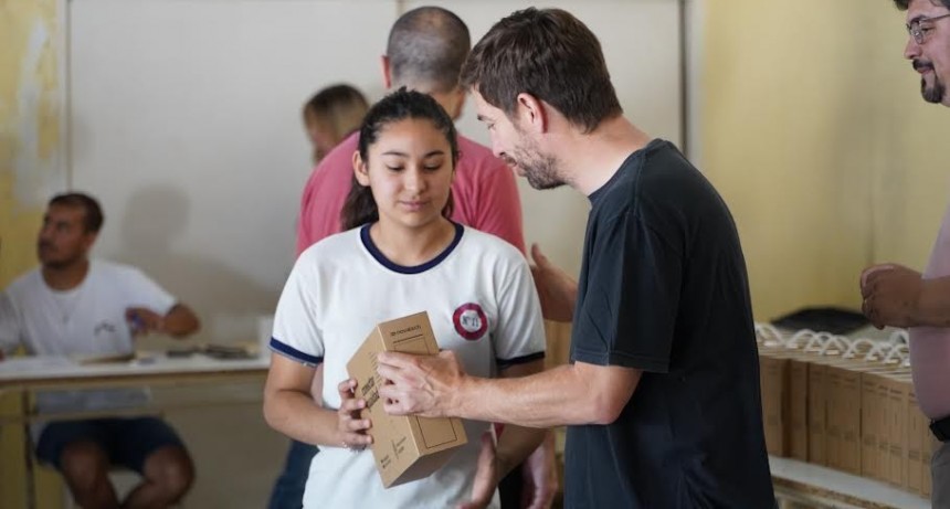 El intendente, Fabián Cagliardi, encabezó el acto de entrega de instrumentos de percusión, bombos de murga y redoblantes, cedidos por la Fundación Banco de la Provincia de Buenos Aires, para el proyecto de Murga que funciona en la Escuela Primaria N9 “América”