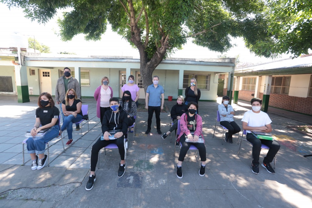 De la jornada, también participaron 4 chicas y chicos de la secundaria, quienes recibieron presencialmente las computadoras, junto a un familiar. Mientras que el intendente, mantuvo una charla por videollamada con los demás compañeros del curso.